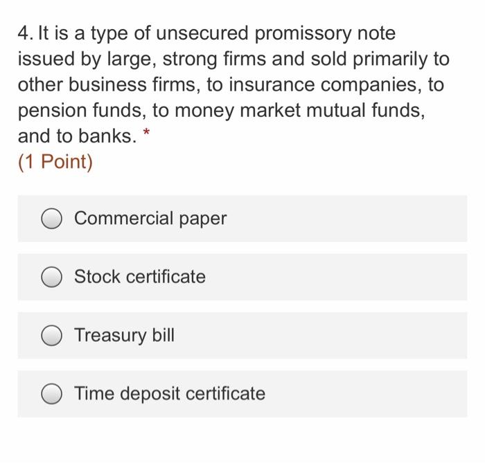 Solved 4 It Is A Type Of Unsecured Promissory Note Issued Chegg Com